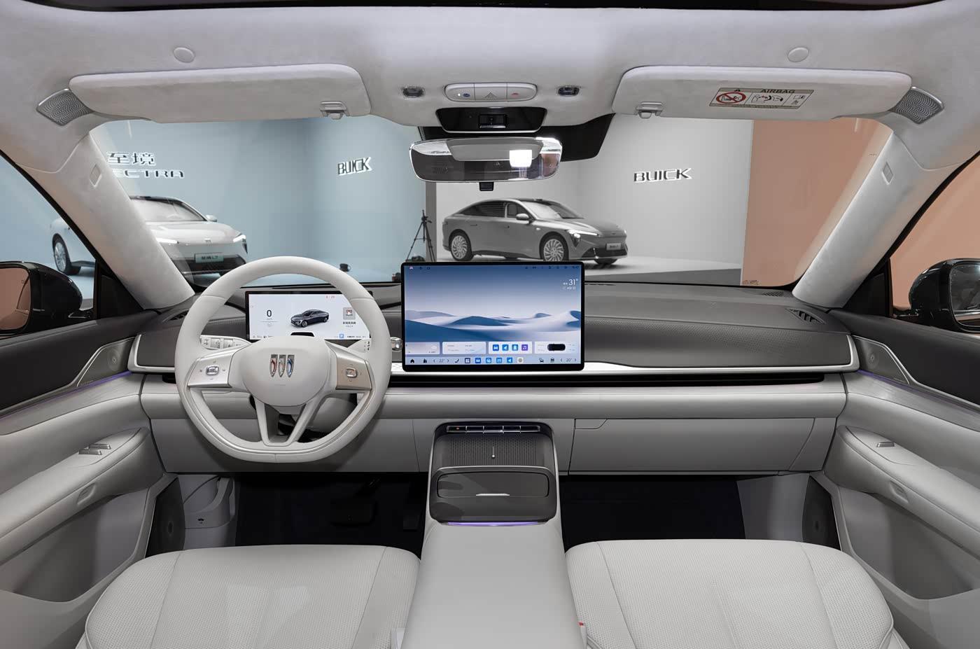 进入车内,新车"纯净浮岛"座舱采用15.6英寸悬浮中控屏+10.25英寸仪表+50英寸AR-HUD的三屏架构,高通SA8775芯片提供72TOPS算力。Nappa真皮座椅支持通风/加热/按摩,副驾103mm可调腿托零重力座椅,二排云感悬浮层座椅带独立控制屏。27扬声器Buick Sound音响系统与6mm双层静音玻璃构建剧院级声学环境,极夜追星、琥珀暖棕四种内饰主题满足不同审美偏好。